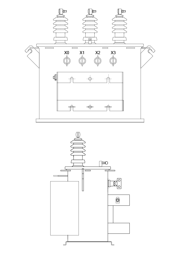 O arranjo dos componentes e dimensional destes equipamentos seguem a padronização da NBR-5440 em sua versão vigente, entretanto na tabela abaixo podem ser obtidas as dimensões externas / arranjo geral e massa para estes tipos de transformadores: